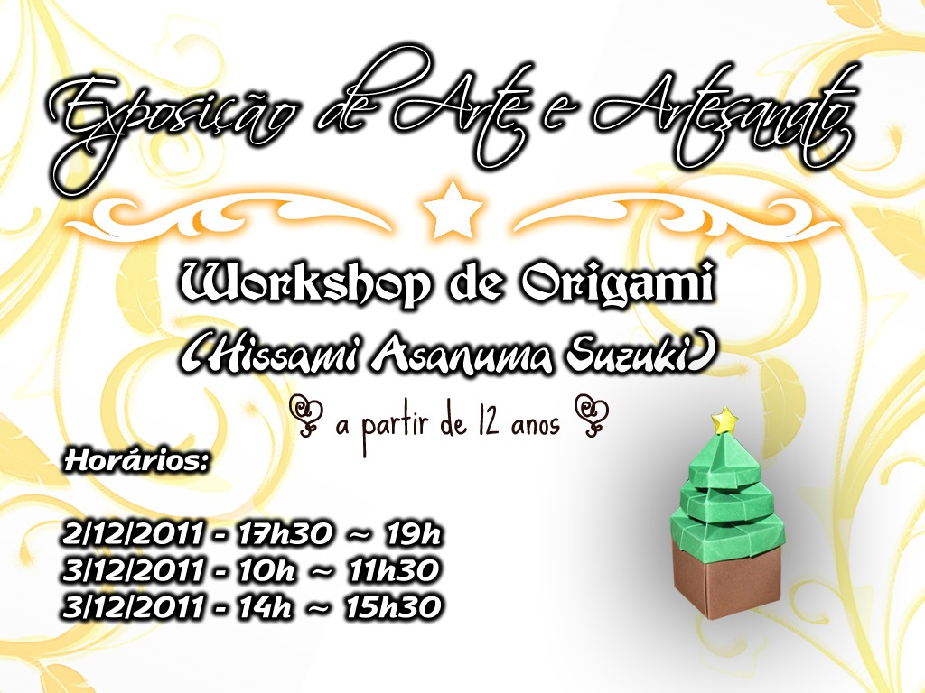 Será nos dias 2 e 3 de dezembro e estarei lá com meus origami e farei um worshop da caixa - árvore de natal.